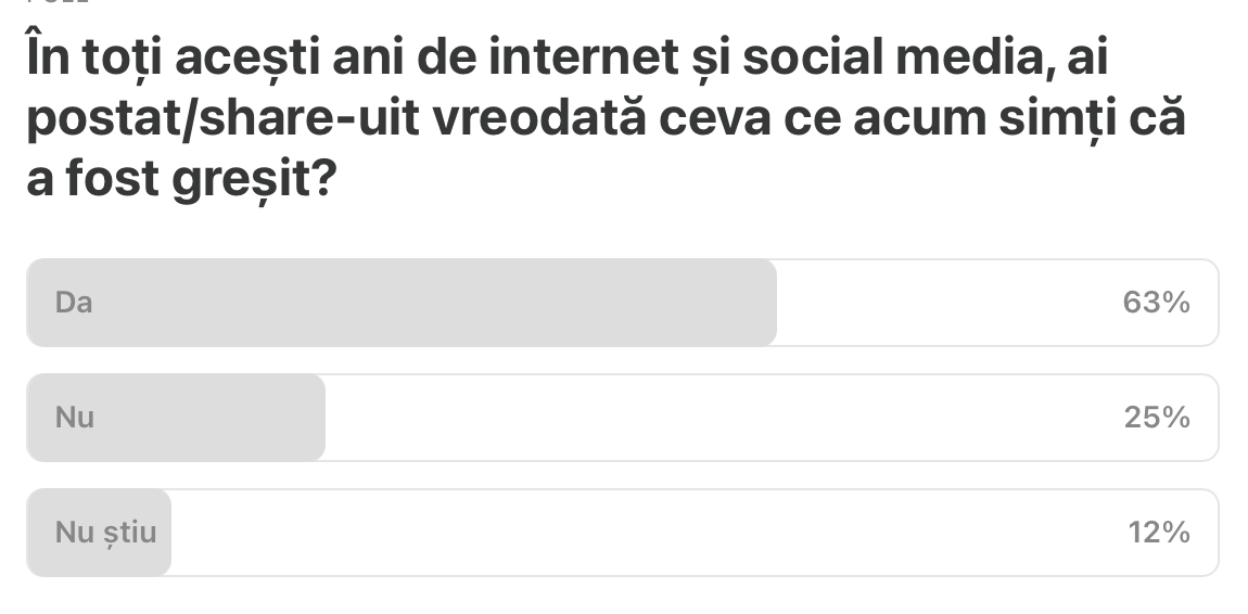 Săptămâna trecută vorbeam de ce simt cu privire la unele lucruri regretabile pe care le-am postat pe net. Și eram curios să știu cum vă raportați și voi la viața voastră digitală. S-a răspuns așa și așa⤵️