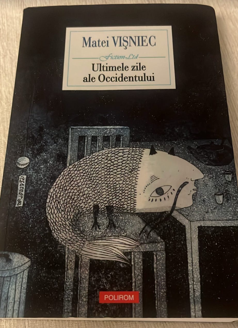 Ultimele zile ale Occidentului de Matei Vișniec - într-o bună zi, nu azi și nici mâine, o să mă apuc să scriu o carte despre cât de mult îl urăsc pe Vișniec. Îl urăsc pentru că are imaginație, pentru că nici când e direct nu e un tezist, că are un stil minunat de a scrie despre el și alții, că n-are povești „prea de tot” și toate i se leagă. Pentru un om care scrie și vrea să scrie e puțin deprimant să-l citești pe Vișniec. Altfel e bombă💣
