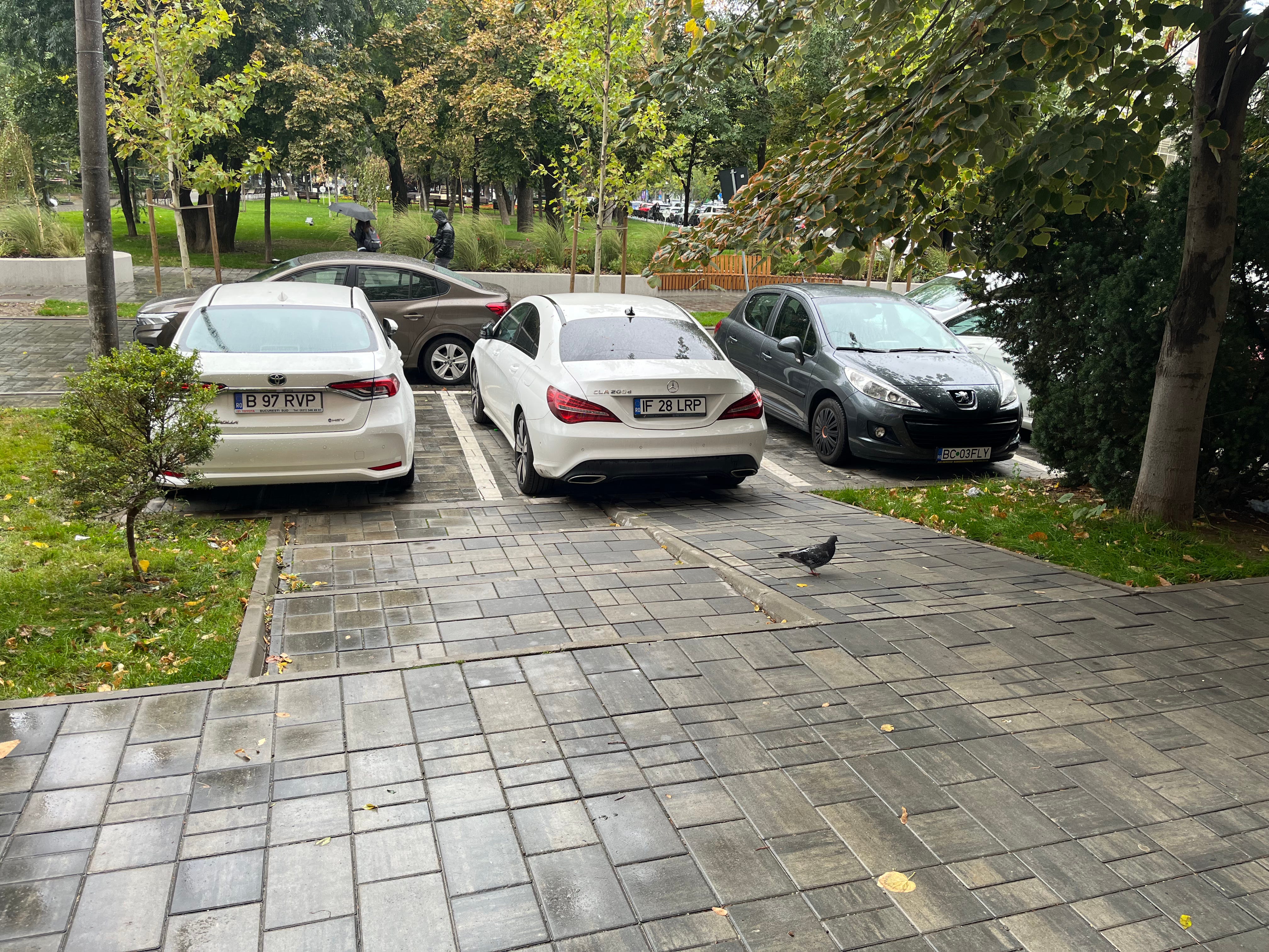 N-am cenzurat numerele mașinilor din imagine pentru că posesorii lor n-au făcut nimic greșit. Sunt mașini parcate regulamentar. Problema e că cine a gândit rampa și scările nu s-a gândit că ele se termină în… Altfel, totul bine. Măcar s-a făcut, nu?