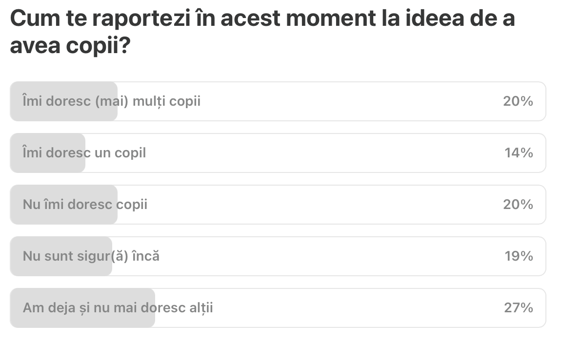 În precedentul newsletter vă întrebam de copii. Dacă vreți, dacă (mai) vreți, d-astea. S-a răspuns foarte interesant, la comentarii și în sondajul de mai jos: